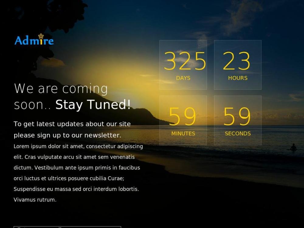 A responsive "coming soon" page template with a due date counter and contact form. This beautiful website placeholder is completely free.