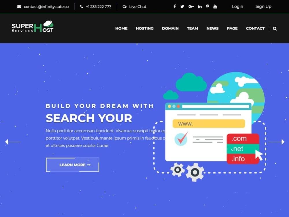A full-featured website template for web hosting and technologies, featuring nearly 50+ elements and 3 unique pre-built homepages.