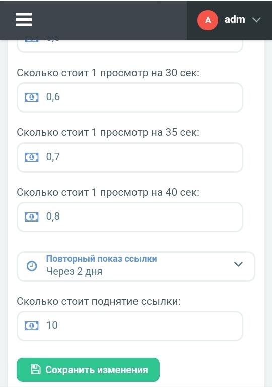 4. The site creator can configure prices for views and the interval in the control panel.