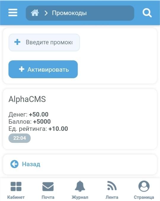 When creating a promo code, you can specify how much money, points, and rating units the user will receive after activating the promo code.