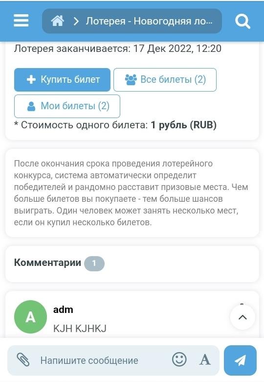 1. The creator can create lotteries, specify prizes in points for 1st-3rd places, as well as the duration.