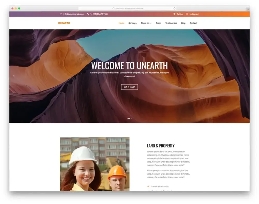 Unearth is a free one-page template designed to help you quickly launch a website for businesses in the mining, construction, or industrial services industries.