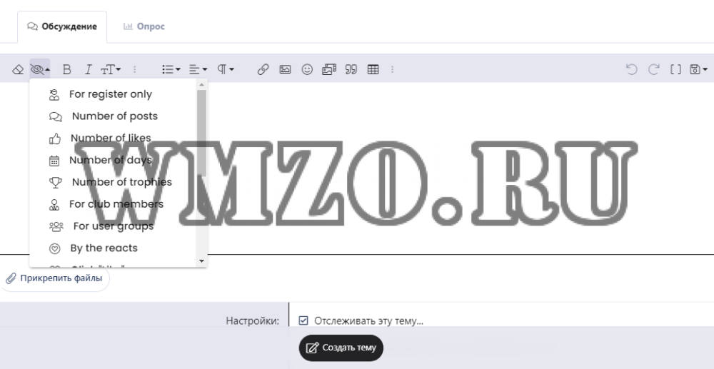 [MMO] Hide — hidden text plugin for XenForo 2 forum. Supports 14 bb-codes for hiding by different parameters:
